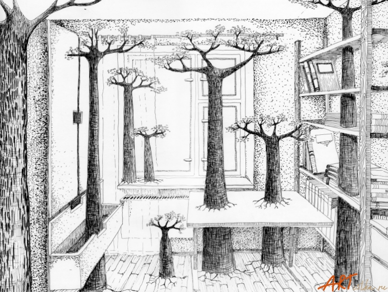 Картинку эту я нарисовала когда-то своим детям, чтобы они увидели как баобабы выросли в их комнате из-за их нелюбви к уборке. Но картинка вовсе не вышла устрашающей и не произвела должного впечатления))