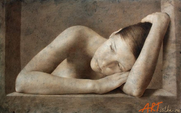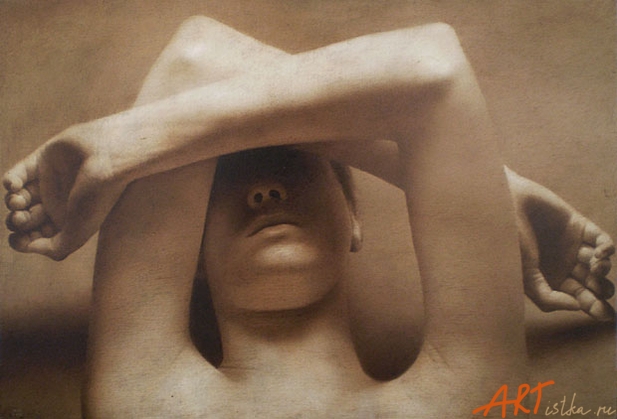 Использую отражение света и тени, чтобы подчеркнуть форму предметов и их кривизну. Я никогда не использую цвет, только некоторые оттенки для достижения эффекта спокойствия. Я стараюсь достичь гладкости кожи и тела, чтобы мазки не были видны зрителю. Я разработал этот метод для рисования человеческого тела и применял его почти во всех своих рисунках».