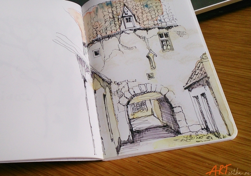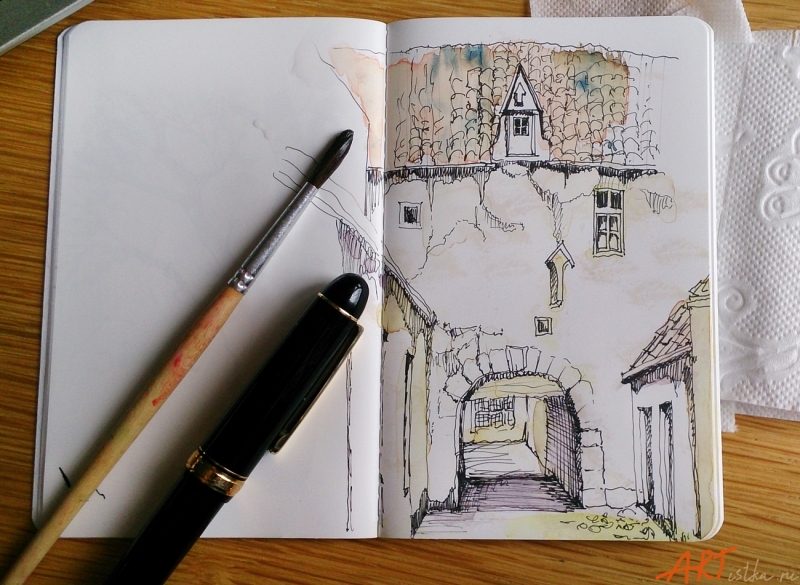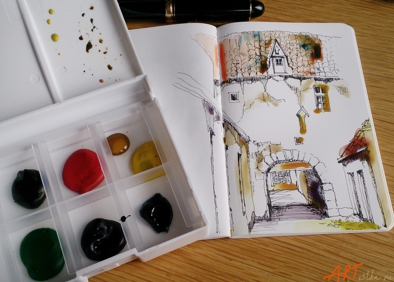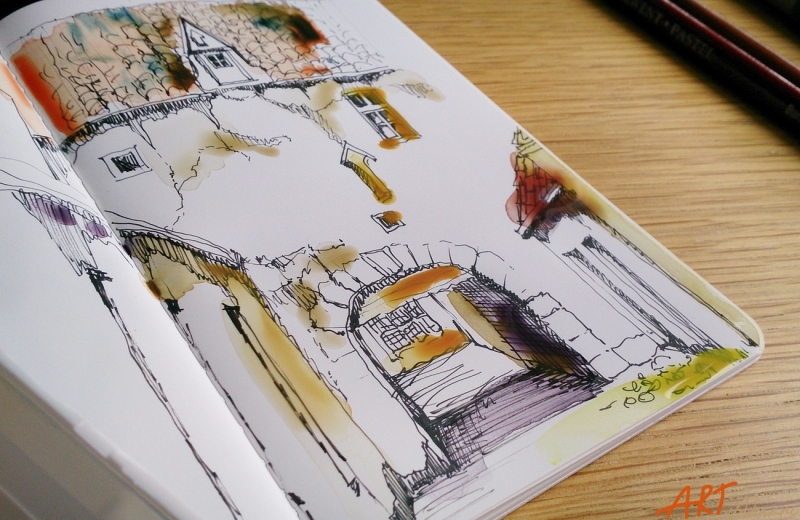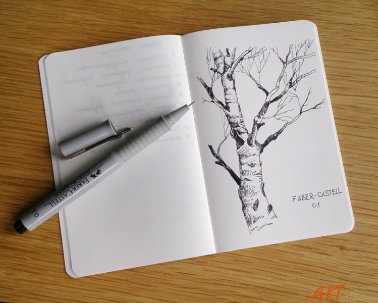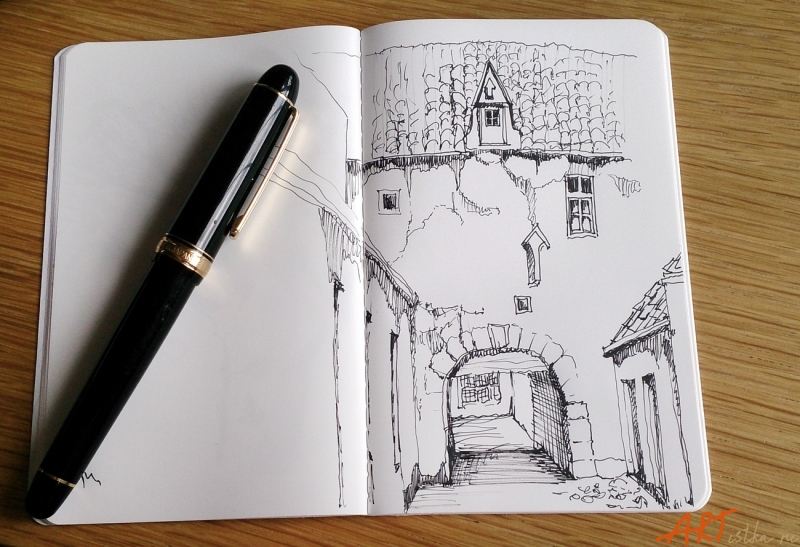 Вывод: хорошая бумага для письма и рисования перьевой ручкой, даже очень тонкой (я использую EF, экстратонкую), особенно с карбоновыми водонерастворимыми чернилами, для рисования простым карандашом, цветными карандашами, маркерами и линерами. Если тонировать рисунок акварелью - надо брать как можно меньше воды, работать практически сухой кистью.