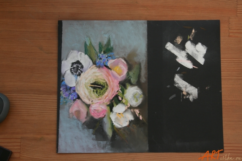 Сегодня буду рисовать опять. У меня на столе стоит букет пионов по случаю 15-летия свадьбы, а в пробке неподалеку стоит курьер с набором пастели.