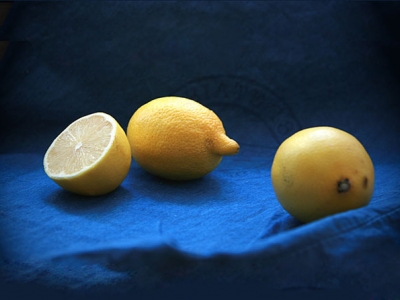 Выбрала лимон. Лимон - вещь понятная, простая. А вот фон, синяя ткань, это сложная работа. Это на пятерку. У меня вышло неважно. Но у вас есть шанс сделать хорошо, потому что я в процессе буду рассказывать где ошиблась и как сделать лучше.